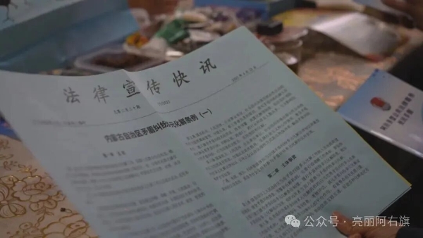 在巴丹吉林镇同泽园小区,阿拉善右旗综治中心银发调解员开展法律宣传服务活动,他们手持《中华人民共和国民法典》宣传手册与图文资料,用通俗语言围绕邻里纠纷、家庭财产划分等问题讲解法律条款,排查潜在矛盾隐患,让法律知识更贴近群众。