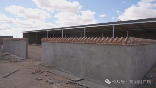 在阿拉善右旗易地搬迁后续扶持塔木素布拉格苏木安置区产业发展项目现场,各项建设工作有序推进中。据介绍,该项目投资246万元,在布日德嘎查骆驼产业基地新建4座驼圈,配套建设防疫物资储备室、技能培训室、奶质检测室等配套基础设施。