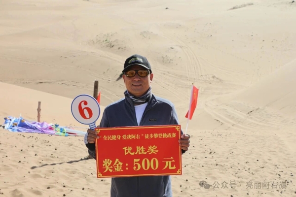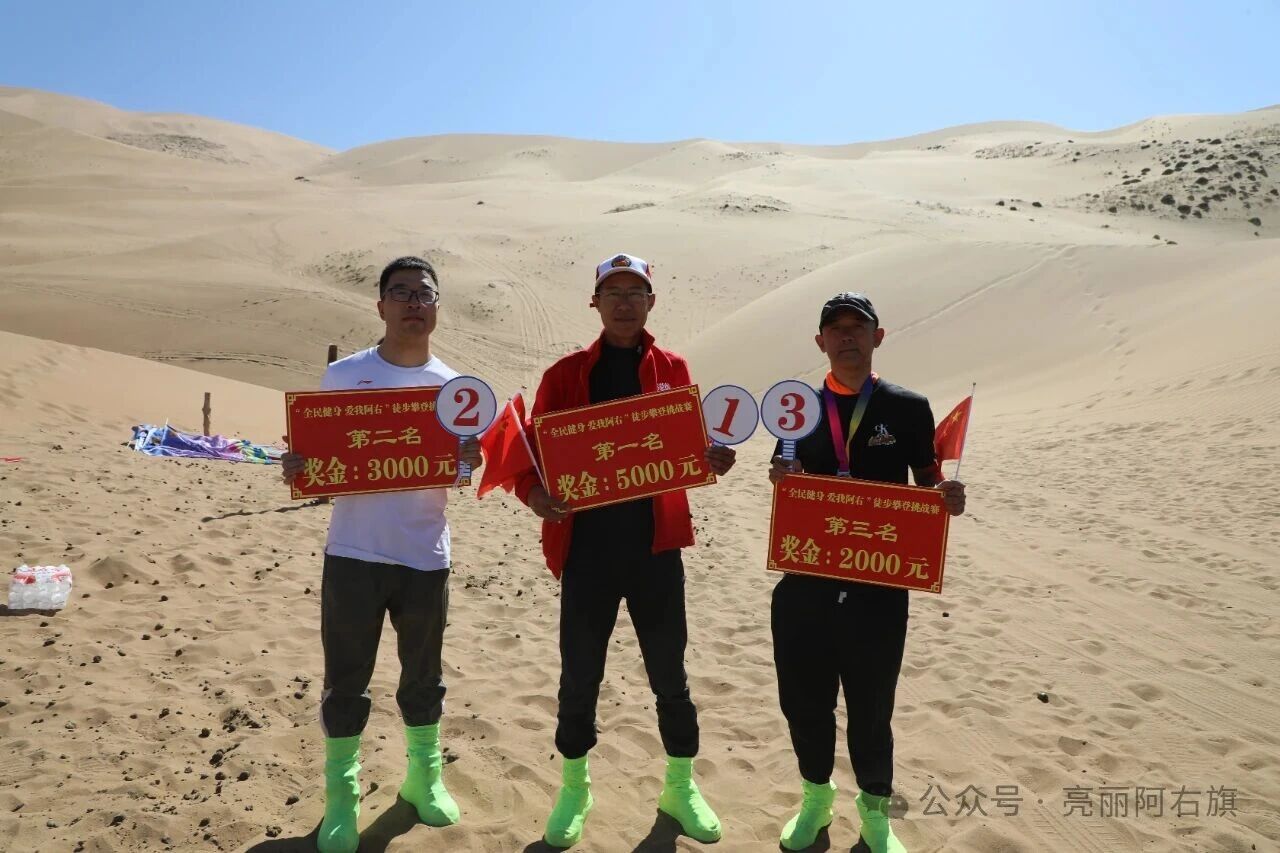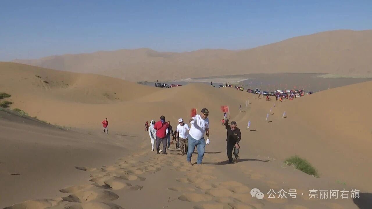 10月2日,由阿拉善右旗总工会、内蒙古巴丹吉林旅游开发有限公司主办,沙漠纵队协办的“全民健身 爱我阿右”徒步攀登沙漠珠峰挑战赛在巴丹吉林沙漠必鲁图峰举行。