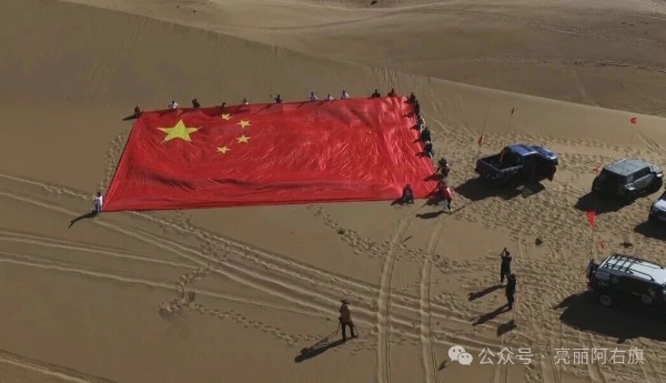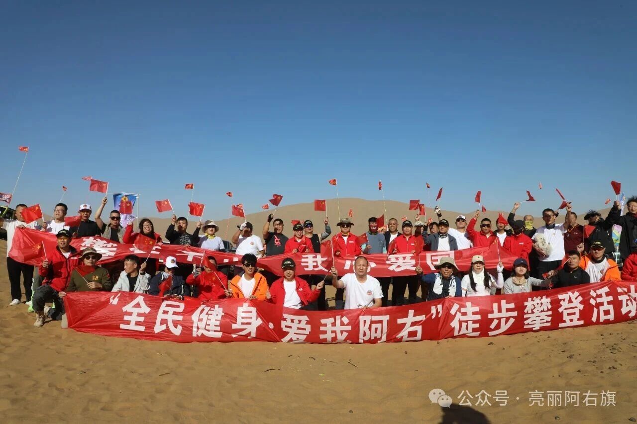 阿拉善右旗“沙漠珠峰”挑战赛:徒步登顶,巨幅国旗飘扬为祖国庆生