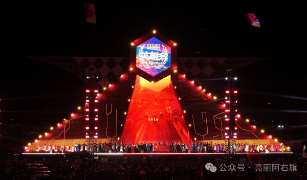主会场舞台,灯光璀璨、歌声飞扬,阿拉善右旗乌兰牧骑专场晚会精彩上演,演员们表演歌舞、长调、马头琴、器乐合奏等地方特色的文艺节目,迎接八方宾客,在场观众纷纷拿起手机记录这一美好瞬间。