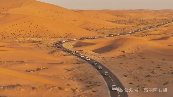 伴随着引擎的轰鸣,百辆越野车开启“最美沙漠公路之英雄集结主题巡游”,他们驾驶“战车”穿行在广袤大漠,掠过湖泊欣赏大漠美景,每一帧画面都震撼人心,每一段驰骋都写满热爱。