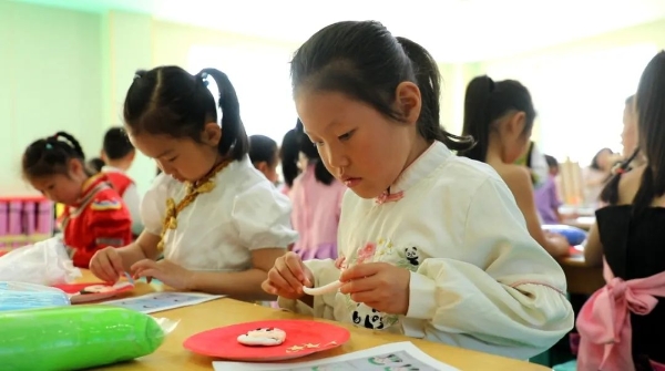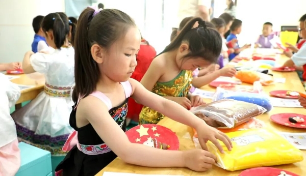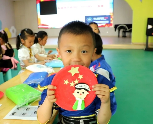 随后,幼儿园小朋友们拿起画笔、揉捏彩泥,通过彩泥制作《民族娃娃》、绘画《民族团结一家亲》,用丰富多彩的线条和图案描绘出自己对中华民族共同体的理解和向往。